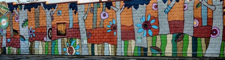 For the month of February, we are partnering with Downtown Lansing, Inc. to bring a new mural to the Old Town General Store! Artist Barbara Hranilovich designed one of the first murals in Old Town. The original mural was painted with the assistance of different community members and volunteers. Rhea VanAtta, owner of the Old Town General Store, is working to do something similar and has the great fortune to have the same artist agree to design the new mural. The original mural was painted fifteen years ago.