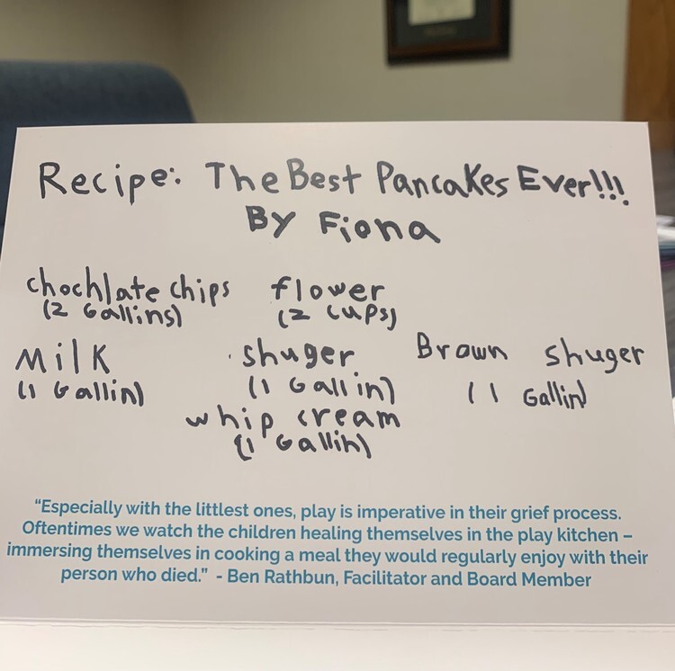 Our agency President, Paul Rathbun, was a Community Board Member at Ele's Place for six years and Ben Rathbun now holds the same role. Ben also has been a Support Group Facilitator for the last six years. Attending Ele's Place on a weekly basis, Ben has seen firsthand the power of bringing chlildren together with shared experiences. This year, cards were sent out to donors with a recipe for breakfast from one of our participants. Inside the card, Ben reflected on the role that play has on the grief process for young children.