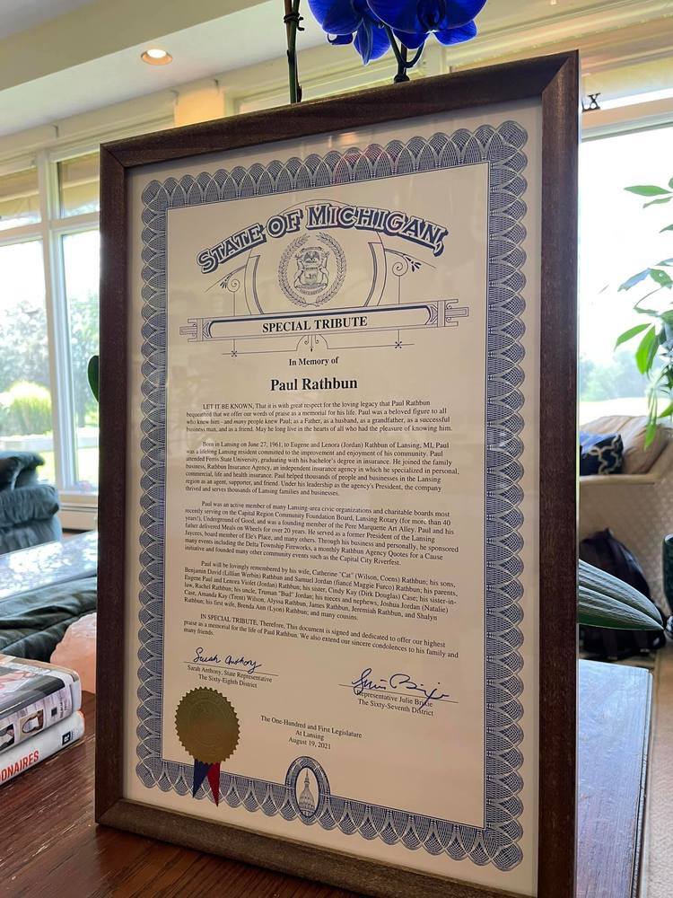 Thank you to State Representative Sarah Anthony and State Rep. Julie Brixie for this special legislative tribute in honor of Paul.