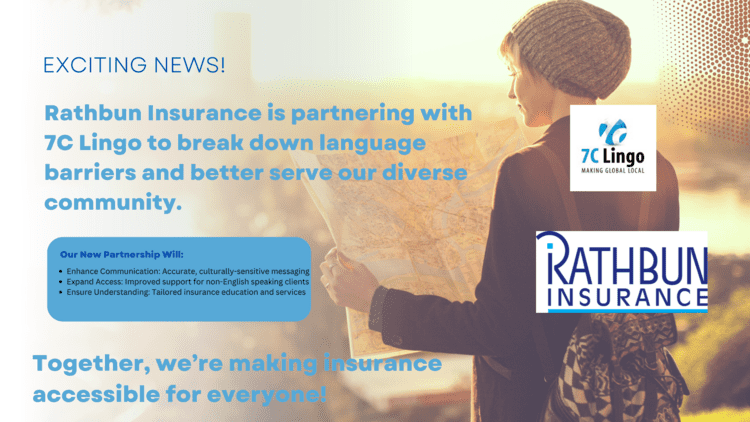 At Rathbun Insurance, we are thrilled to announce our new partnership with 7C Lingo, effective August 1st! This collaboration marks a significant milestone in our ongoing commitment to providing exceptional service to our diverse client base.