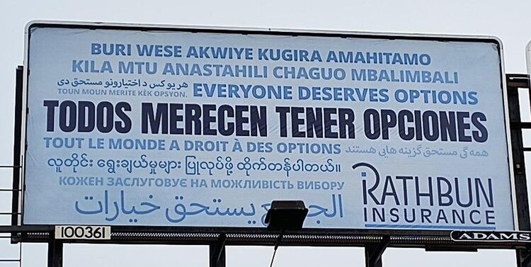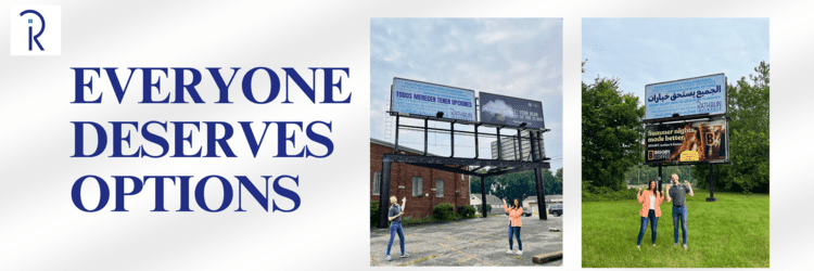Each billboard proudly features the phrase “Everyone Deserves Options” translated into 11 different languages, reflecting the diversity of the community we’re honored to serve. It’s a visual