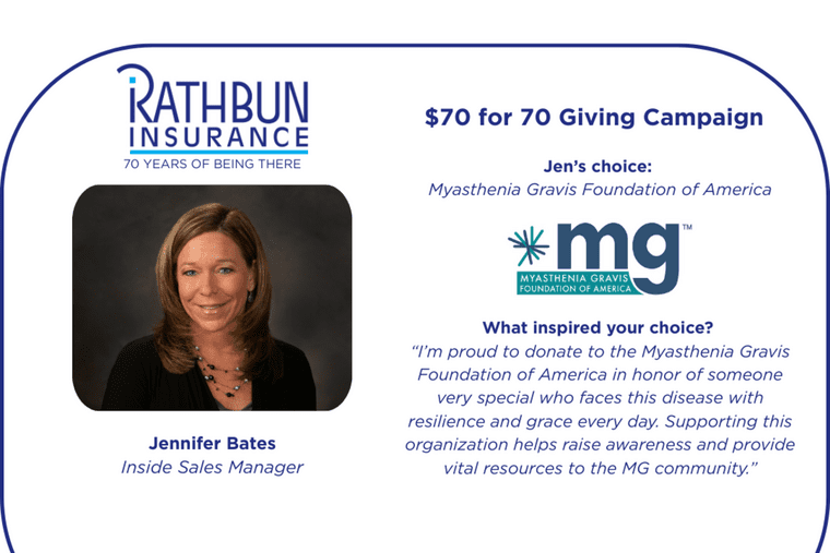We are proud to stand with Jennifer and the Myasthenia Gravis Foundation of America as part of our continued commitment to service during our 70th year.